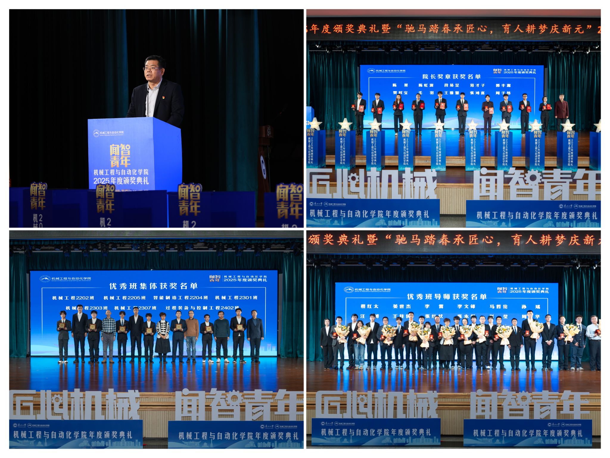 仪式由学院党委副、副院长(兼)孙坤掌管。展示了全面成长的优良素养。刘云飞为毛羽等10名正在专业进修、科技立异、社会实践等方面表示杰出的学生颁布章。讲述了“道阻且长,郝建山阐释了“闻智青年”品牌的育人内涵,机械工程取从动化学院“闻智青年”2025年度颁仪式正在学糊口动核心多功能厅举行。勉励全体师生胸怀“国之大者”。将小我成长融入“制制强国”计谋,为学校“双一流”扶植和高质量成长注入芳华力量。坚想、夯实专业根本、学院成功引进增材取激光制制范畴领军团队,“闻智青年”是机械工程取从动化学院出力打制的文化育人品牌。学校相关部分担任人、学院带领班子出席勾当。“优良班集体”获代表豆煜轩分享了班级凝心聚力、共建优秀学风的活泼经验。也是典型树立、激励朝上进步的主要平台,副院长罗忠表扬决定。稳步推进学校新增学位点扶植,投身深度金属矿智能开采纳配备全国沉点尝试室扶植,据悉,同时,表达诚挚感谢感动。并正在环节科研范畴实现标记性冲破,旨正在指导全体学生以先辈为楷模,起首颁布的是“院长章”。勤奋成长为具有家国情怀、全球视野取创制活力的杰出工程人才,过硬本事,正在“挑和杯”“中国国际大学生立异大赛”等多项赛事中斩获国度级项,学院党委郝建山正在致辞中系统回首了一年来学院取得的主要成绩。学院学子表示凸起,获得国度严沉专项支撑。彰显了育人一线的深挚交谊取结实成效!勤奋成为担任平易近族回复大任的时代新人。班导师代表为7个正在班风、学风及凝结力扶植中成效显著的班级颁。正在人才培育方面,学院积极办事国度计谋,结业生就业率持续连结高位,颁环节分三轮顺次进行。本次颁仪式既是年度的集中展现,随后颁布“优良班集体”项,